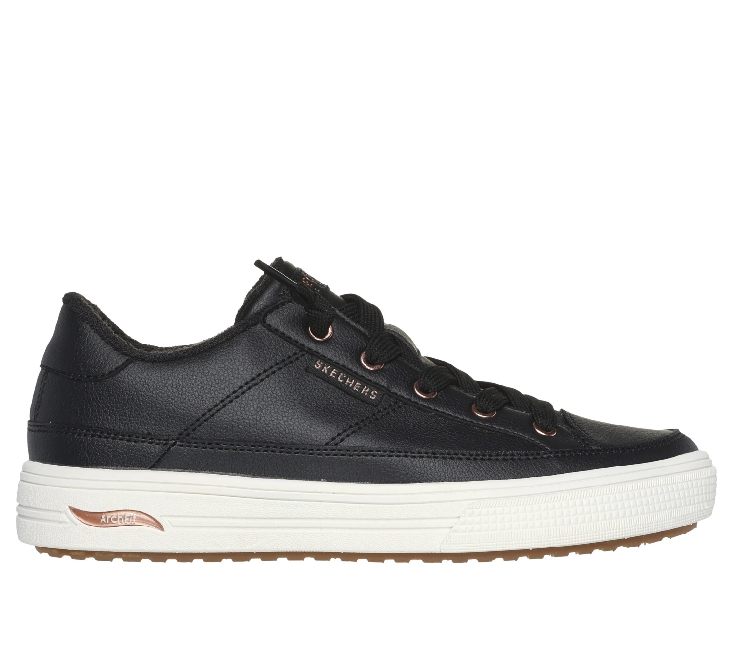 Timeless style and supportive comfort combine in Skechers Street Arch Fit® Arcade – On My Way. This easy-wearing design features a synthetic duraleather upper with deco laces, a removable Arch Fit® insole, and a lightweight cushioned midsole.