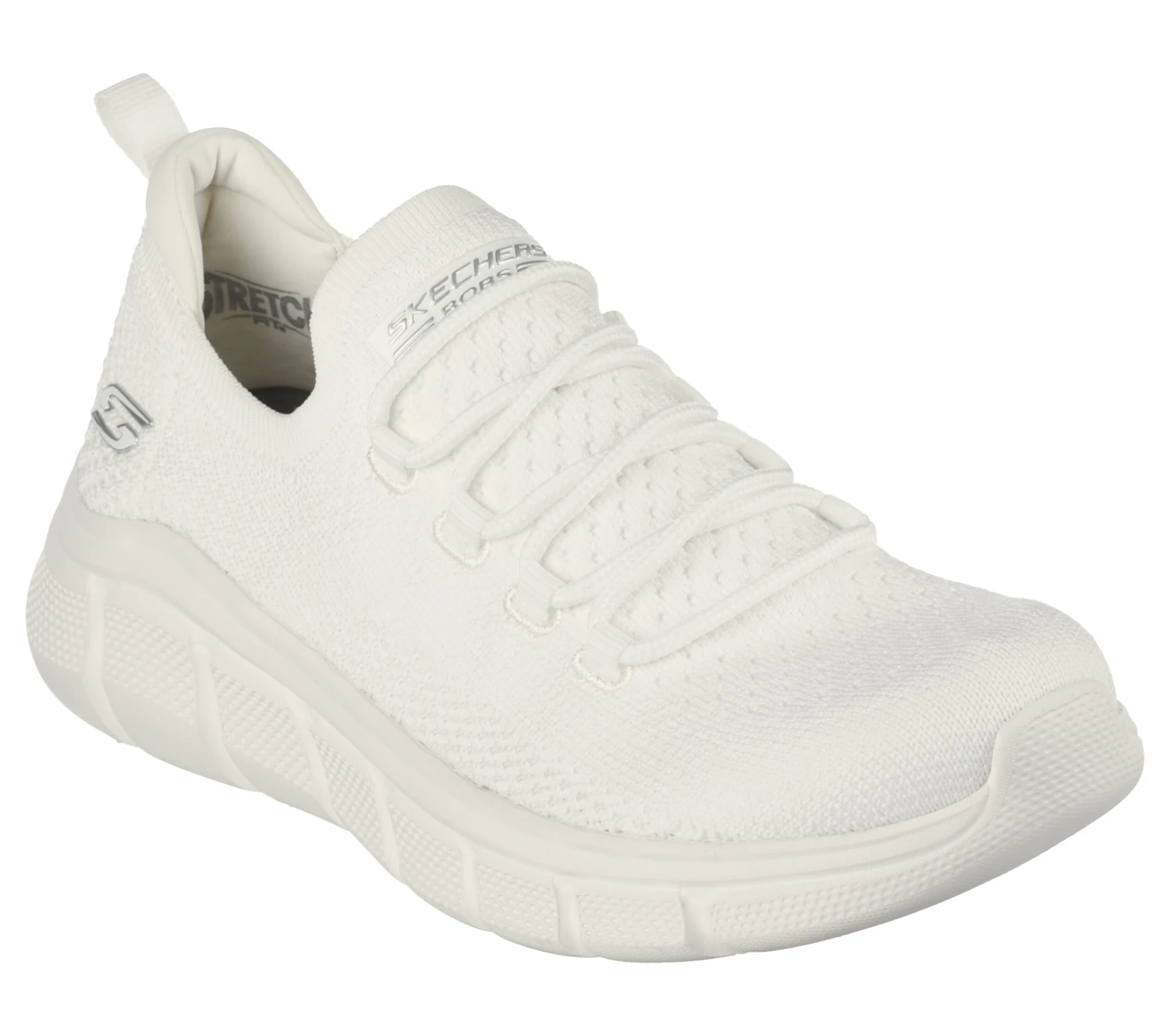 Sleek sporty style and flexible comfort meet in BOBS from Skechers BOBS Sport B Flex – Color Connect. This slip-on features a Stretch Fit® monochromatic engineered knit upper with a bungee-laced front and cushioned Memory Foam insole. For every BOBS purchase, a donation is made to animals in need.