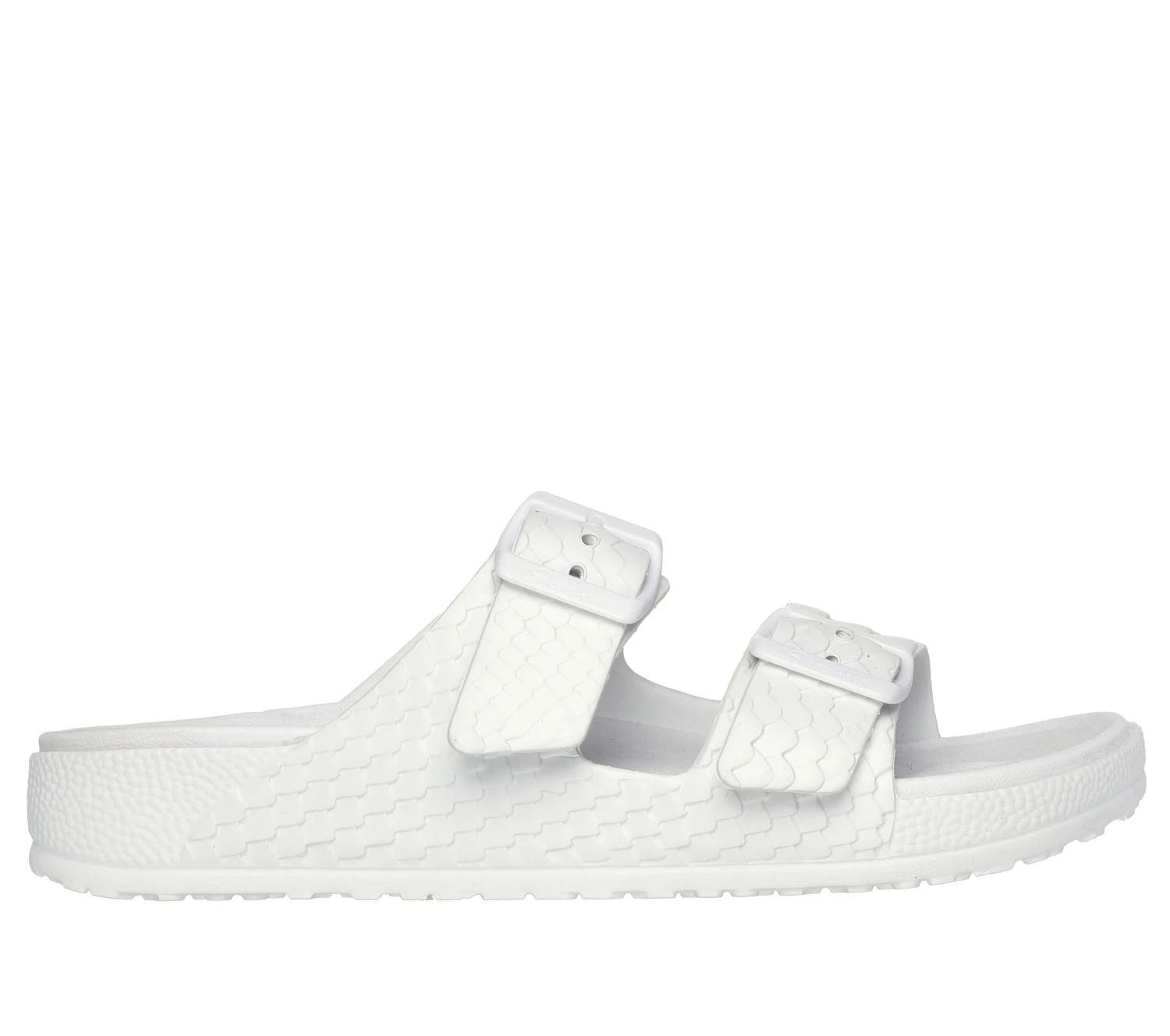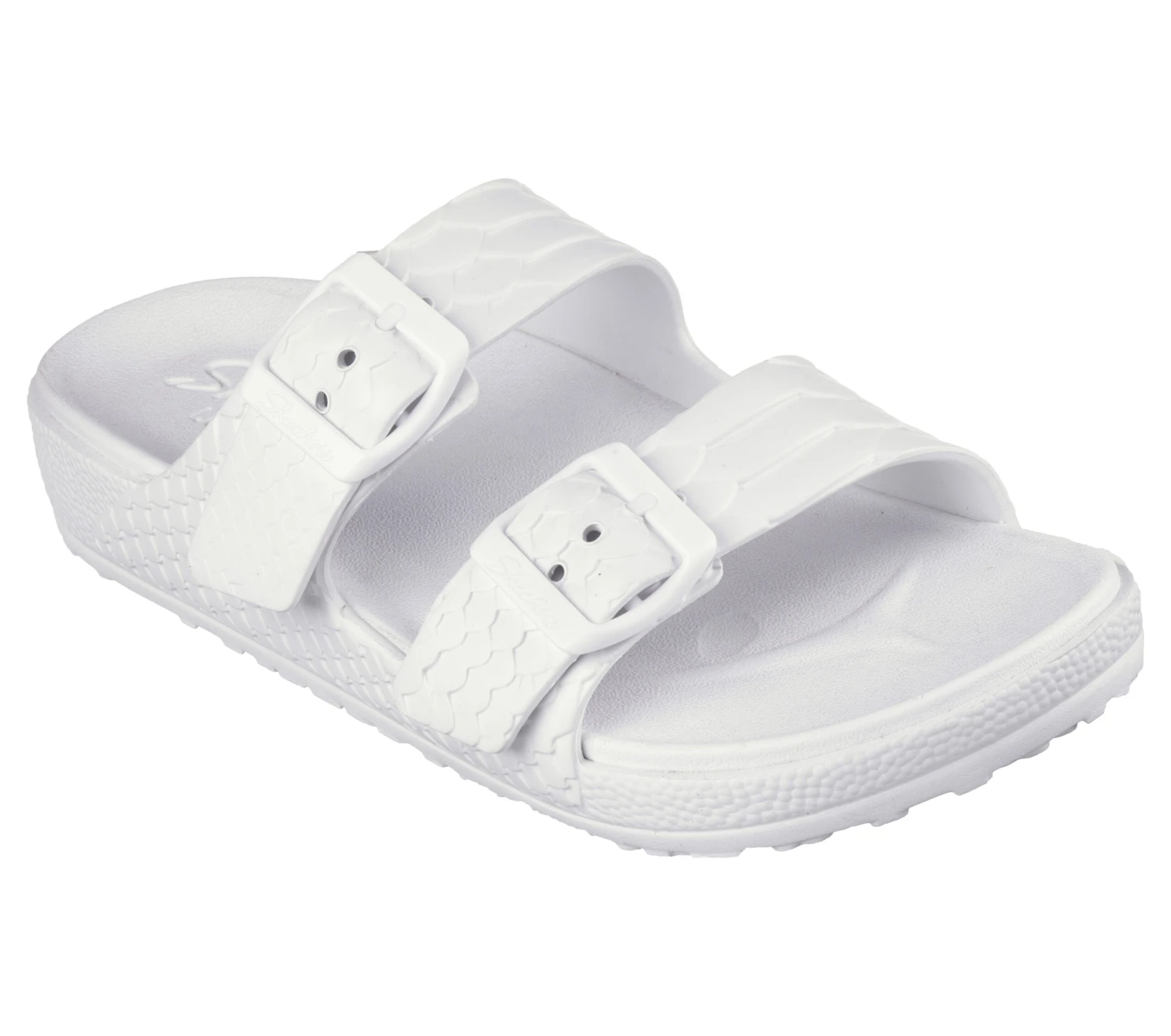 Enjoy textured, easy-wearing comfort in Skechers Foamies: Cali Breeze 2.0 – Royal Texture. Sculpted reptile-embossed EVA foam upper in a casual comfort two-strap slide with metal buckles and contoured Luxe Foam® footbed.