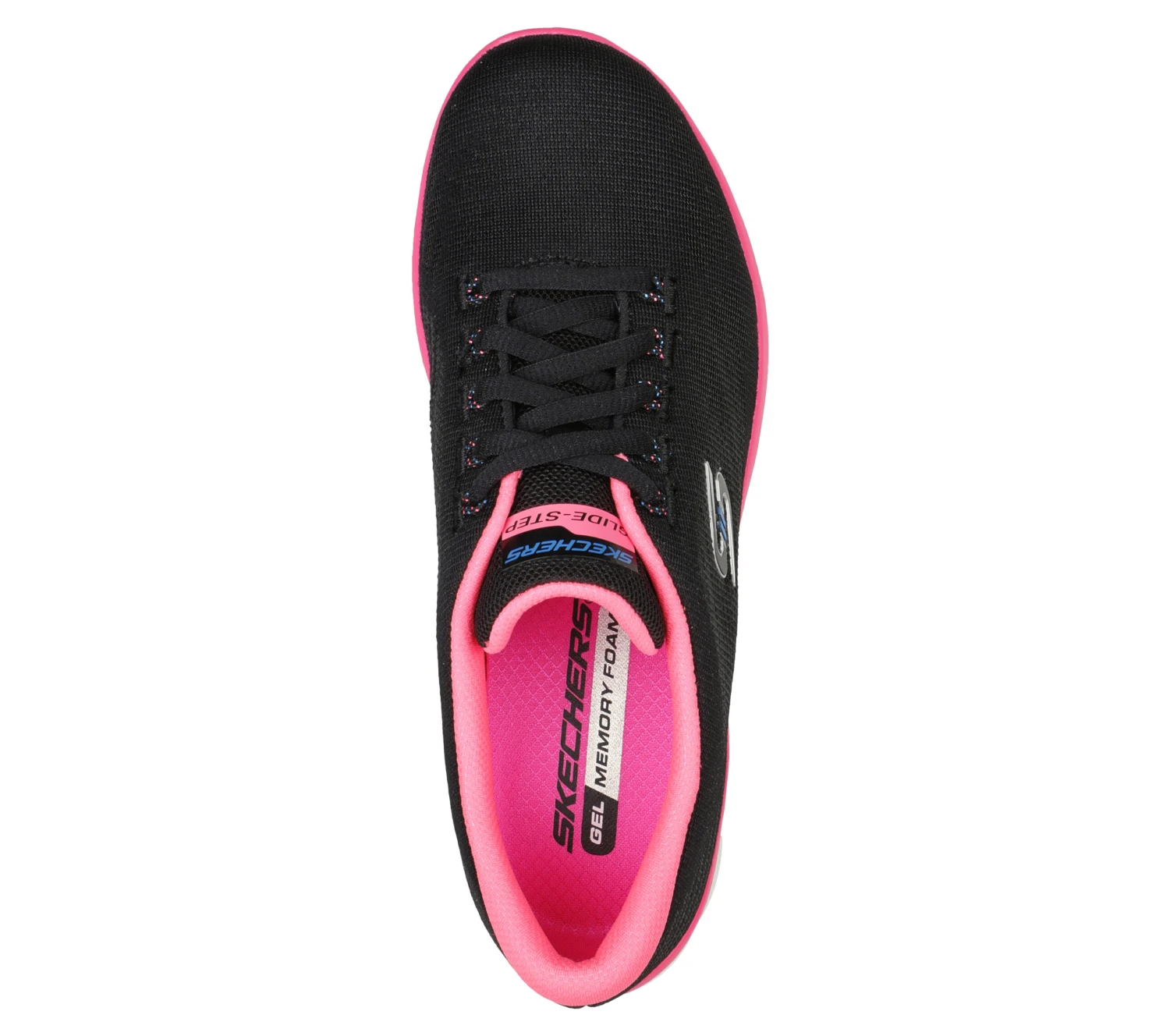 Stride with total comfort and ease in Skechers Glide-Step Flex – Sheer Virtue. This lace-up features a breathable engineered mesh upper with a Skechers Gel-Infused Memory Foam insole, lightweight Glide-Step® midsole and a durable Goodyear® Performance Outsole.
