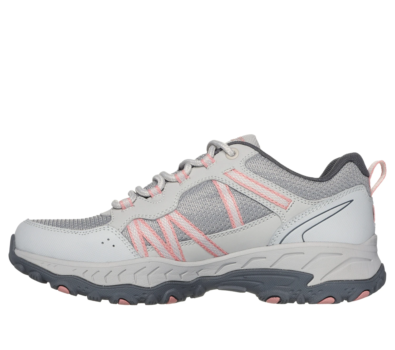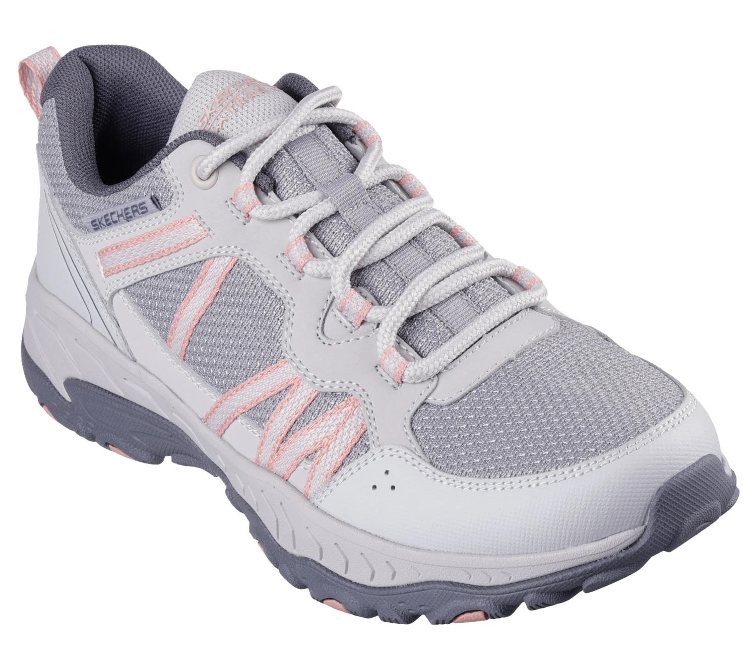 Explore the great outdoors in rugged comfort with Skechers Grand Peak – Balsam. This hiking trail design features a lace-up leather and mesh upper with a cushioned Skechers Memory Foam insole.