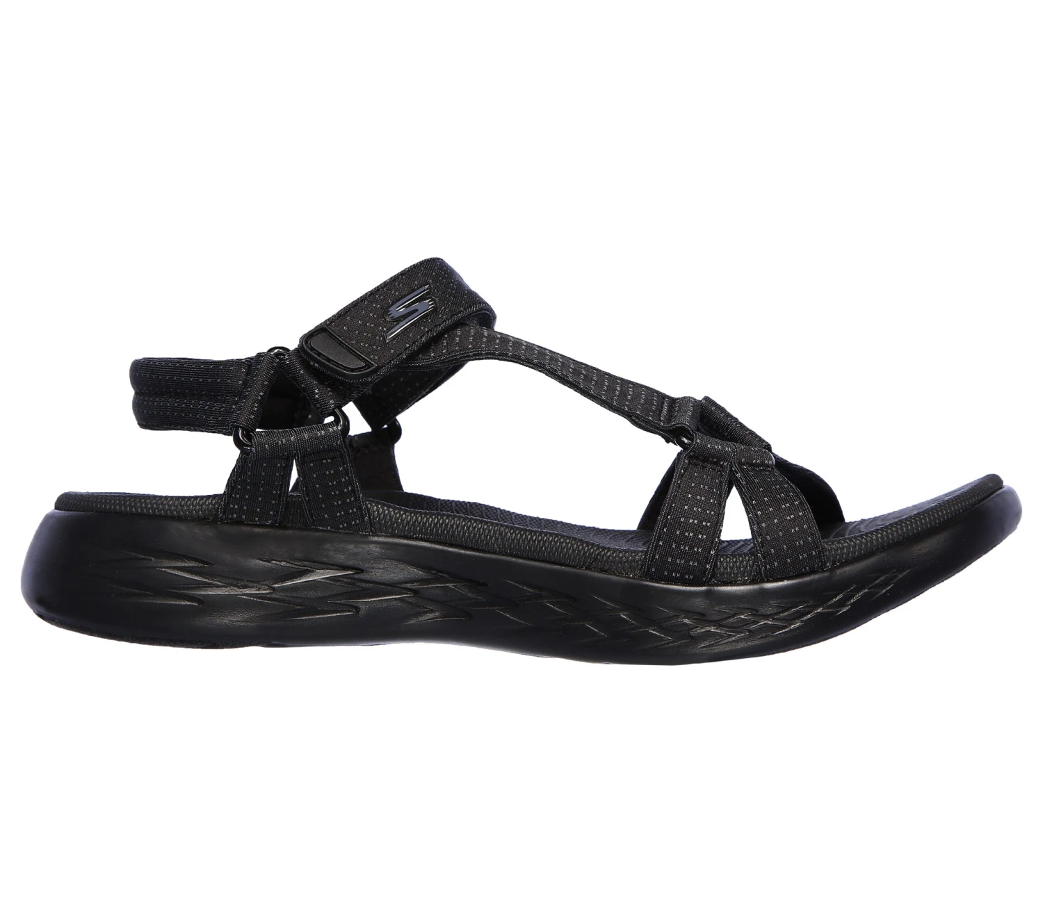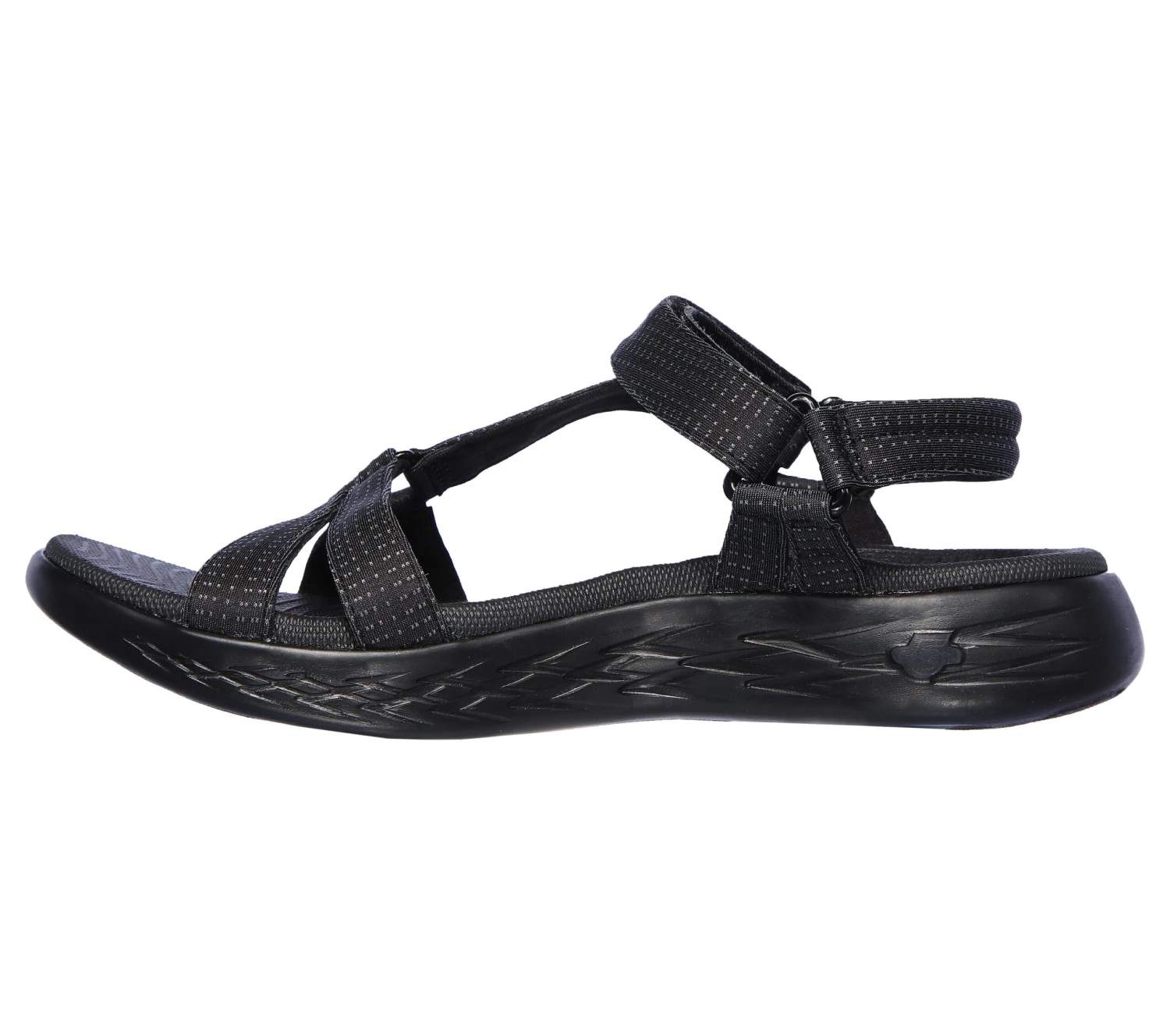 Spend sunny-weather days in style and comfort with Skechers On the GO 600 – Brilliancy. This sporty strappy river sandal features a mesh upper with a lightweight 5GEN® cushioning midsole and contoured Goga Mat® comfort footbed.