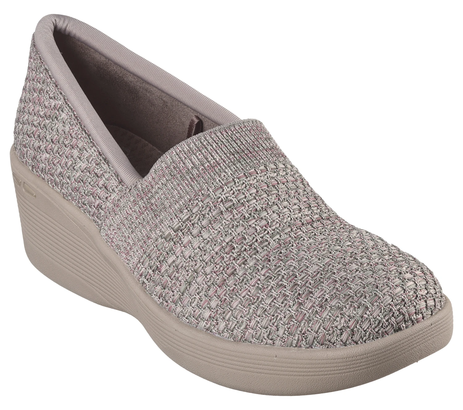 Step it up in style and comfort with Skechers Pier-Lite – Take A Sec. Featuring a heathered Stretch Fit® engineered knit upper, Skechers Air-Cooled Foam Memory® cushioned insole and a wedge heel.