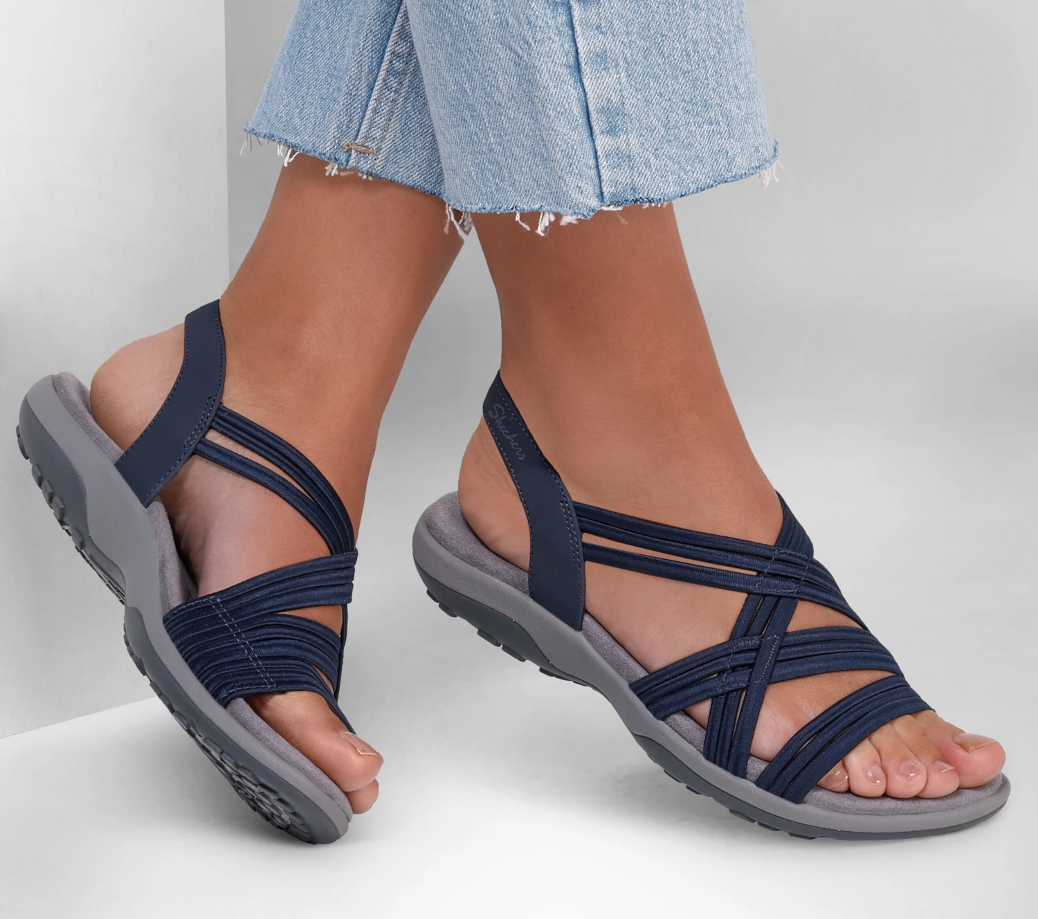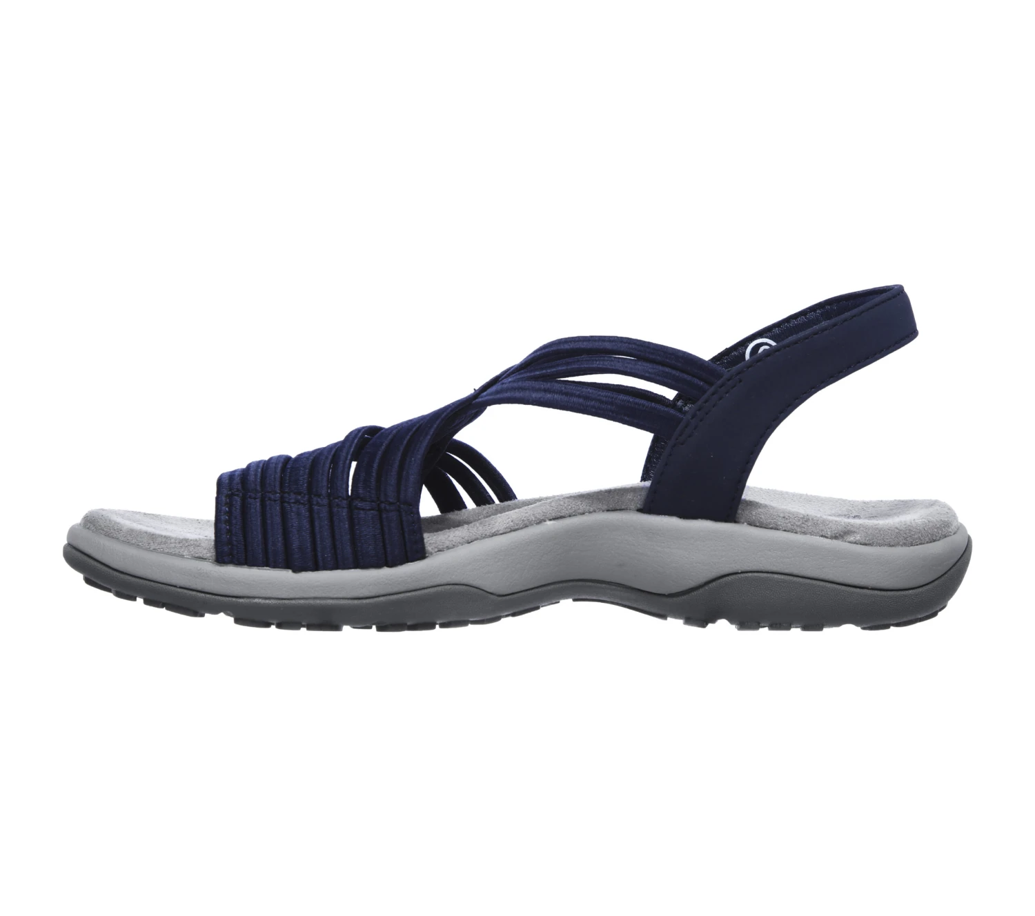 Stretch out and enjoy sunny days in comfort with Skechers Reggae Slim – Simply Stretch. This sporty casual strappy slingback slide style features a stretch fabric and synthetic upper, plus Memory Foam cushioned footbed.