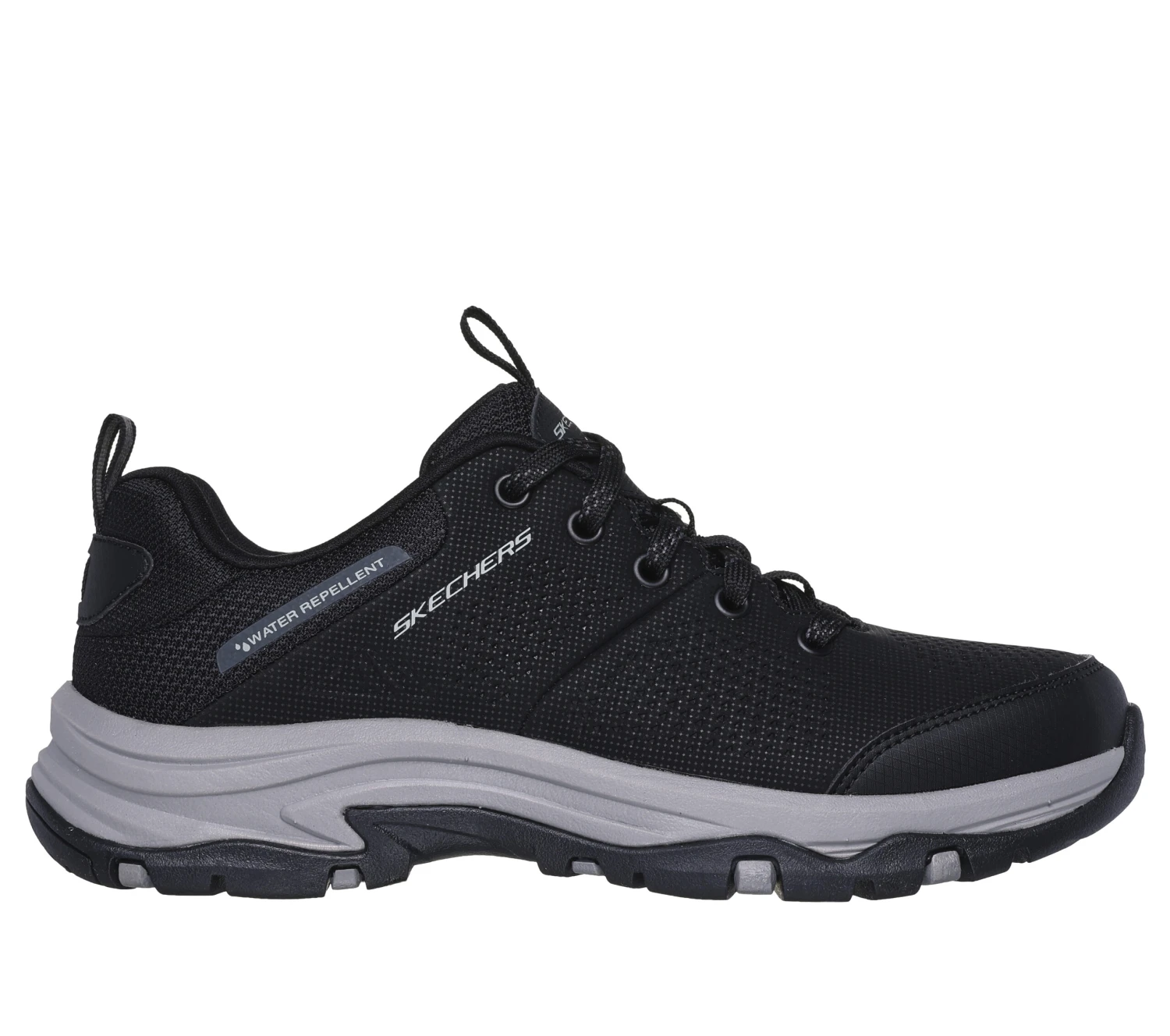 Get ready to explore the great outdoors with Skechers Relaxed Fit®: Trego – Trail Destiny. This lace-up casual trail design features a water-repellent synthetic and mesh upper with a Skechers Air-Cooled Memory Foam® insole.